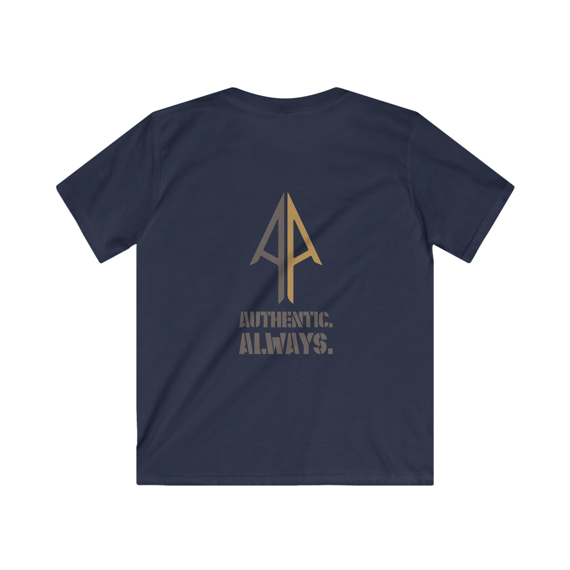 The front features our signature double-A arrow logo — symbolizing growth, strength, and direction — in a sleek brown-and-grey colorway. On the back, the larger logo sits above Authentic. Always. in grey, keeping the message steady and true.